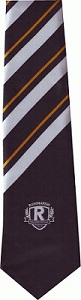 RCS School Tie with motif - Black with white and gold stripe